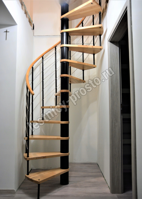 Винтовая лестница Venezia d140 см, серебро, бук лакированный