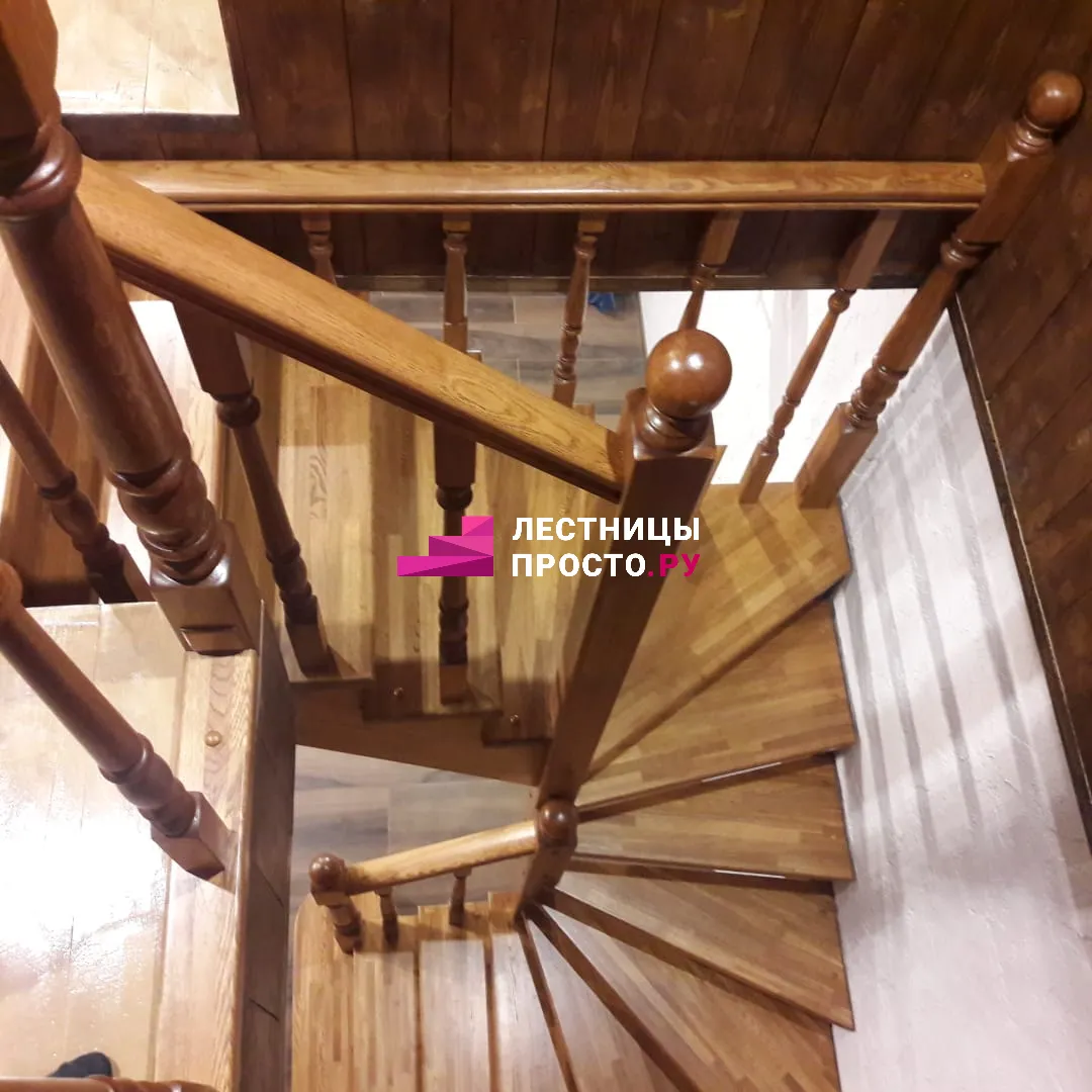 Лестница с поворотом на 180 градусов из цельноламельного дуба