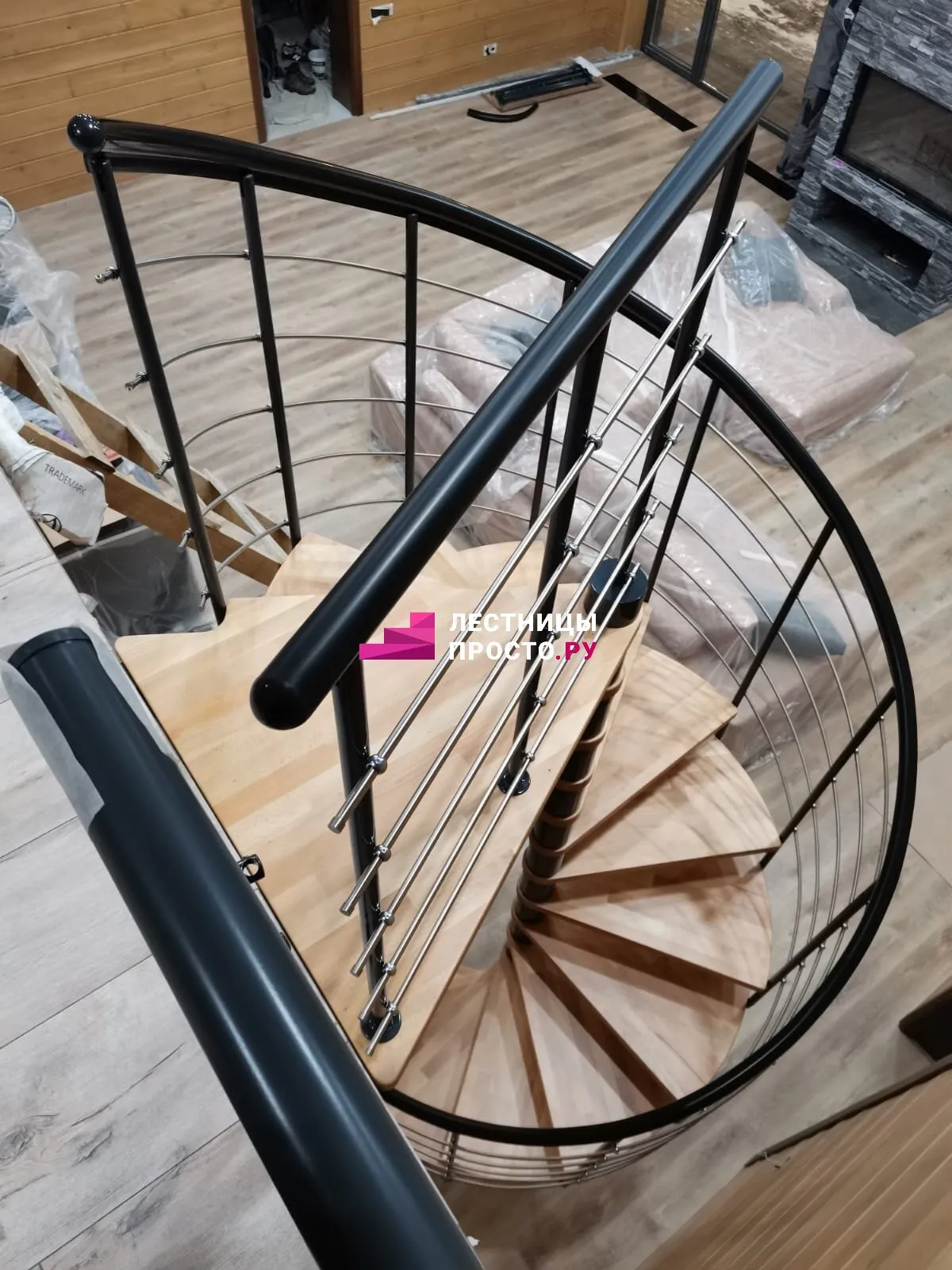 Современная винтовая лестница на мансардный этаж в деревянном доме LP-3066